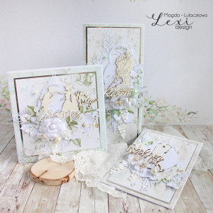 Do kartki dołączone jest białe pudełeczko z okienkiem.