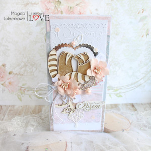 Kartka będzie pięknym i niepowtarzalnym dodatkiem do prezentu dla Państwa Młodych.