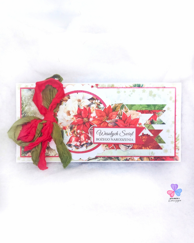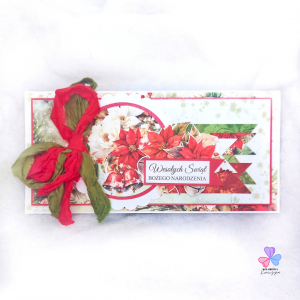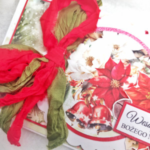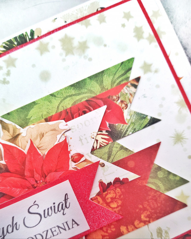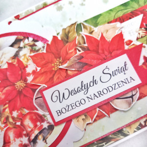 Kartka na Boże Narodzenie wykonana ręcznie techniką scrapbookingu, z dbałością o każdy szczegół. Idealna kartka świąteczna do wysłania!