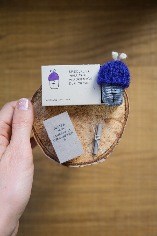 Ps. Istnieje możliwość zapisania dowolnego tekstu na pudełeczku i na bileciku. Proszę wówczas napisać do mnie od razu po zakupie. Mogę też wysłać tyciTulka bezpośrednio do osoby, którą chcesz nim obdarować. To taka POCZTA tyciTulkowa :)