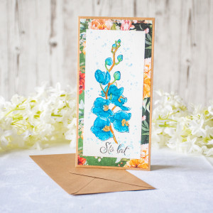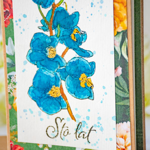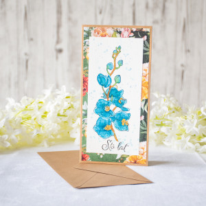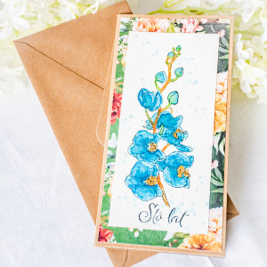 Kartka uniwersalna - akwarela - Sto lat! - storczyk niebieski