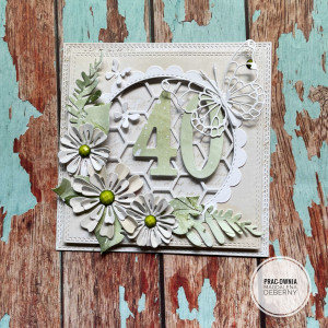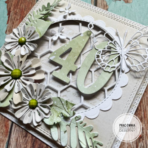 Piękna kartka w kremowo zielonym kolorze z liczbą. Możliwośc dostosowania koloru i liczby.
