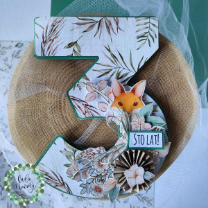 Kartka cyferka na trzecie urodziny. Kartkę można otworzyć i wpisać krótkie życzenia. Kartka mieści się do koperty.