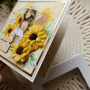 - Kartka zapakowana w pudełko o wysokości 2,5 cm, 15x15 cm.