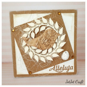 Kartka wielkanocna o wymiarach 13,5x13,5 w pudełku z okienkiem.Wewnątrz miejsce na życzenia, które mogę wydrukować i wkleić do kartki. Życzenia proszę przesłać podczas składania zamówienia. Brak komentarza w sprawie życzeń będzie traktowane jako zakup kartki bez życzeń.