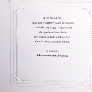 Personalizowana - z imieniem dzieciątka, data uroczystości i życzeniami wewnątrz.