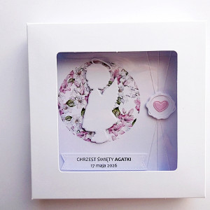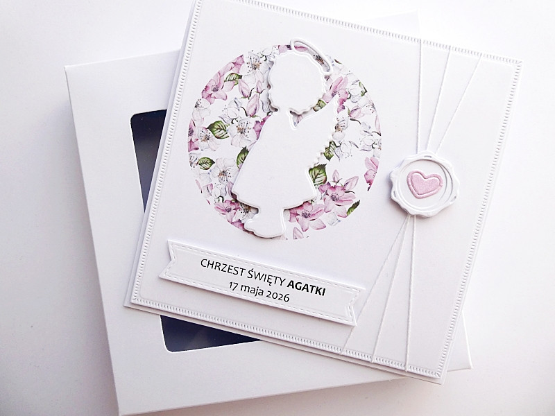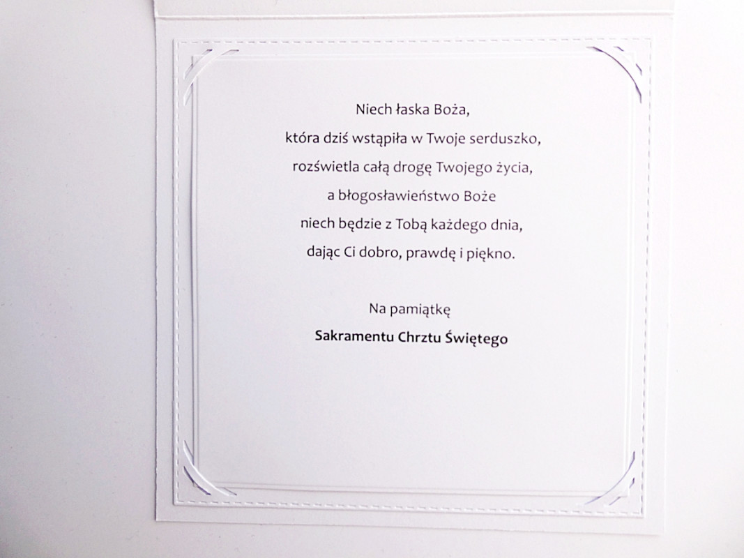 Personalizowana - z imieniem dzieciątka, datą uroczystości i życzeniami wewnątrz.