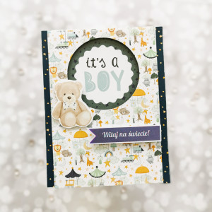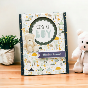 Słodka karteczka z okazji narodzin dla chłopca. Zmieści się do standardowej koperty dołączonej do zakupu. Będzie miłą niespodzianką dla rodziców gdy zostanie wysłana pocztą.
