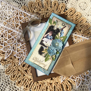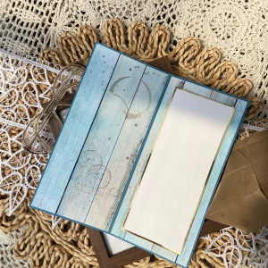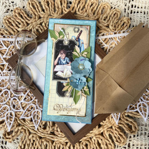 Kartkę wysyłam w eleganckim pudełku z szybką - kolor pudełka dobieram pod kolor kartki.