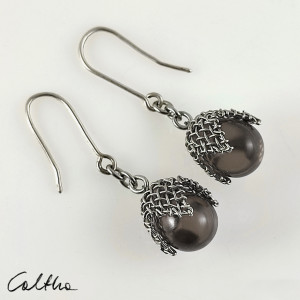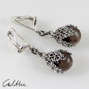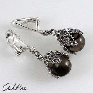 Ciekawe wiszące klipsy wykonane z pięknych szklanych kropli w metalowej siateczce.