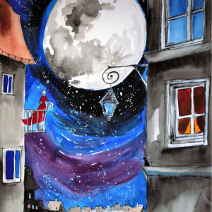"Kiedy pełnia się wypełnia" akwarela, obraz A3