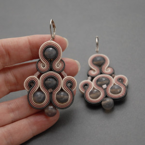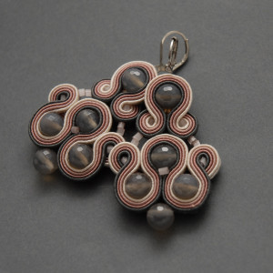 oferuję kolczyki lub klipsy zrobione techniką sutasz, ozdobione fasetowanymi agatami i szklanymi koralikami