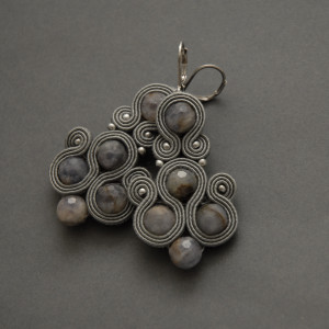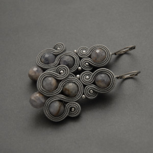 oferuję kolczyki lub klipsy zrobione techniką sutasz, ozdobione fasetowanymi agatami i szklanymi koralikami