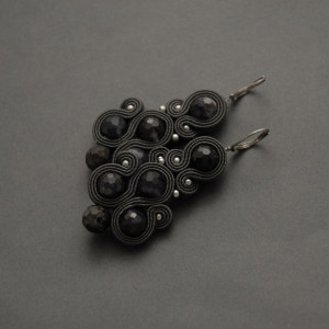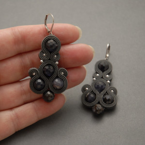 oferuję kolczyki lub klipsy zrobione techniką sutasz, ozdobione fasetowanymi agatami i szklanymi koralikami