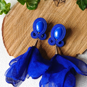 Lekkie, zwiewne i zjawiskowe sztyfty w mocnym kobaltowym kolorze. Idealnie dopasują się do wielu stylizacji. Kolczyki będą stylowym dodatkiem do weselnych kreacji. Szyfonowe zawieszki dodają kolczykom lekkości.