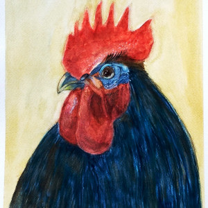 Kogut, akwarela. Format 24x32 cm