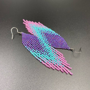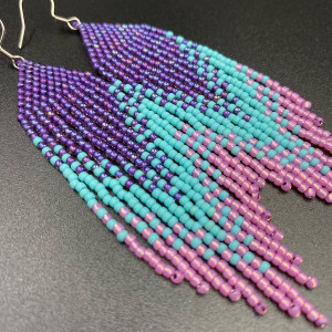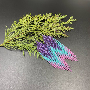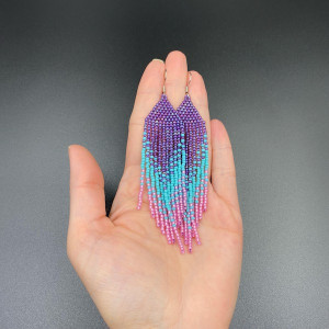 Etniczne kolczyki z efektem cieniowania w 100% utkane ręcznie z koralików TOHO 11. Każdą pracę wykonuję bardzo starannie.