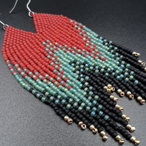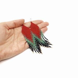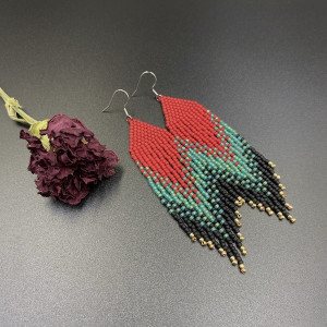 Kolory kolczyków: czerwony, zielony, czarny, odrobina złotego.