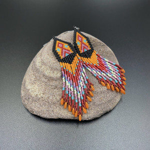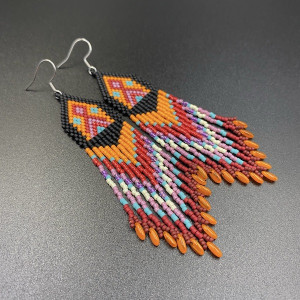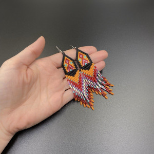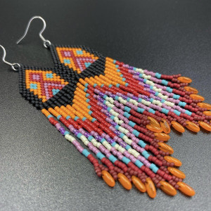 Lekkie i wyraziste, indiańskie kolczyki w 100% utkane ręcznie z najlepszych na rynku koralików MIYUKI DELICA i RIZO. Każdą pracę wykonuję bardzo starannie.