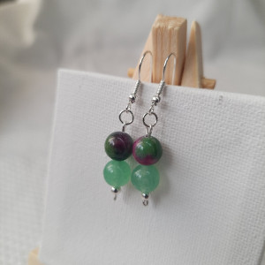 Kolczyki Jadeit turmalinowy, Awenturyn zielony