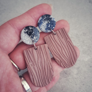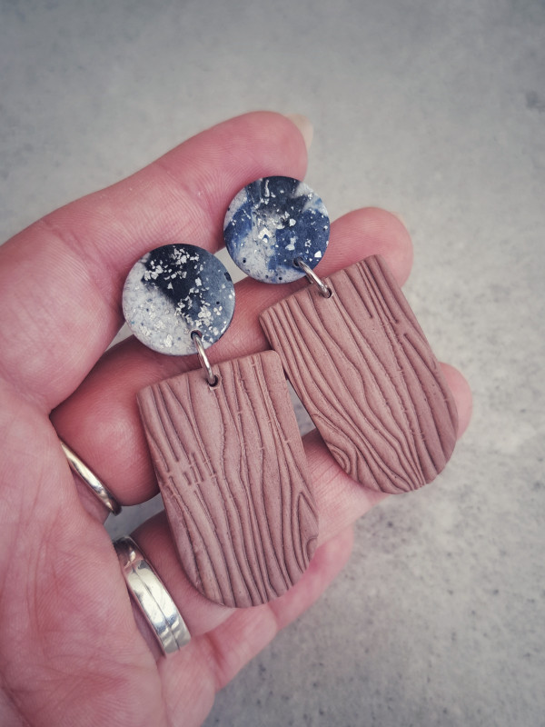 Kolory: brąz, granat, szarość z drobinkami srebra.