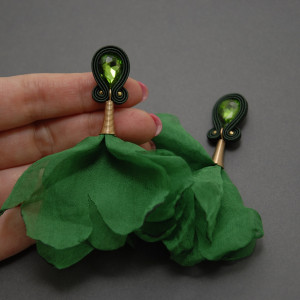 oferuję kolczyki lub klipsy zrobione techniką sutasz, ozdobione fasetowanymi kaboszonami i kwiatkami z szyfonu
