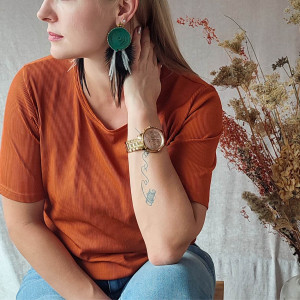 *Kolczyki w kolorze butelkowej zieleni.