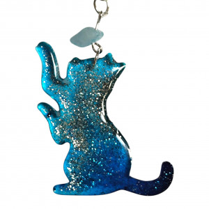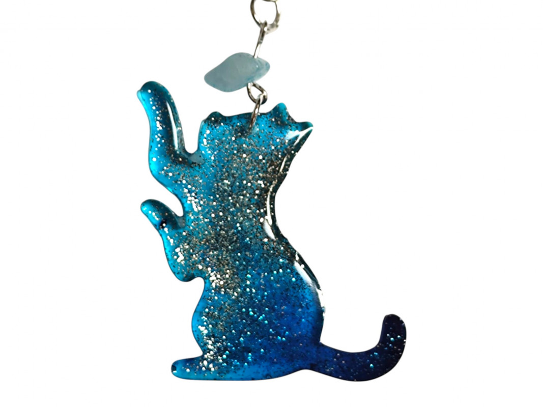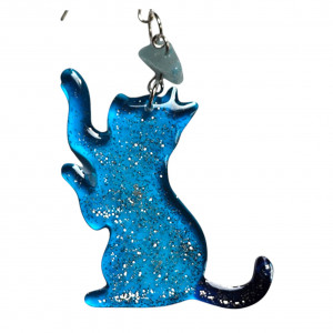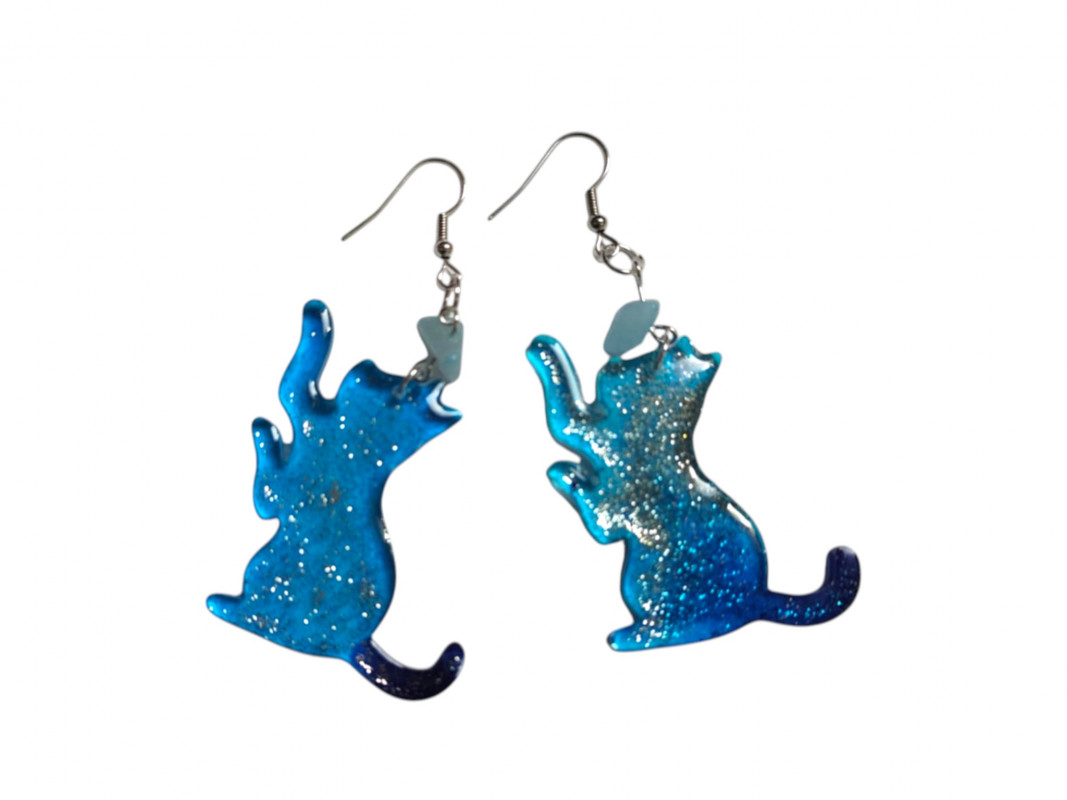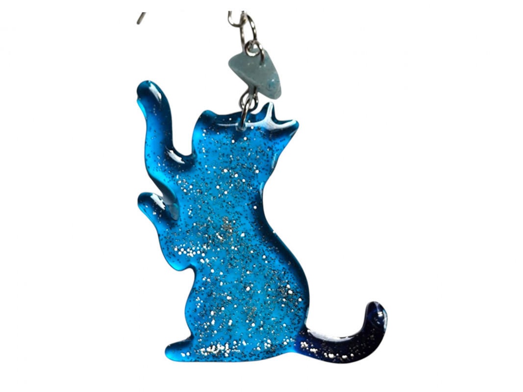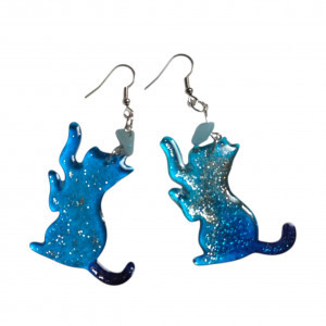 Prezentowana para to słodkie koteczki z żywicy, z dodatkiem brokatu, z koralikami. Każda strona kolczyka wygląda inaczej. Zapięcie bigiel otwarty w kolorze srebrnym.