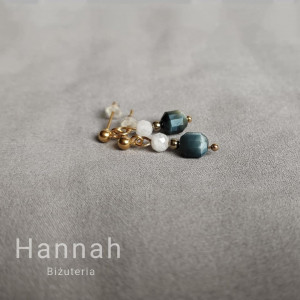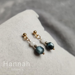 Kolczyki, które urzekają swą elegancją, blaskiem oraz głębokim granatem z jaśniejszymi refleksami połączonym z białym kolorem. Są subtelne i delikatne.