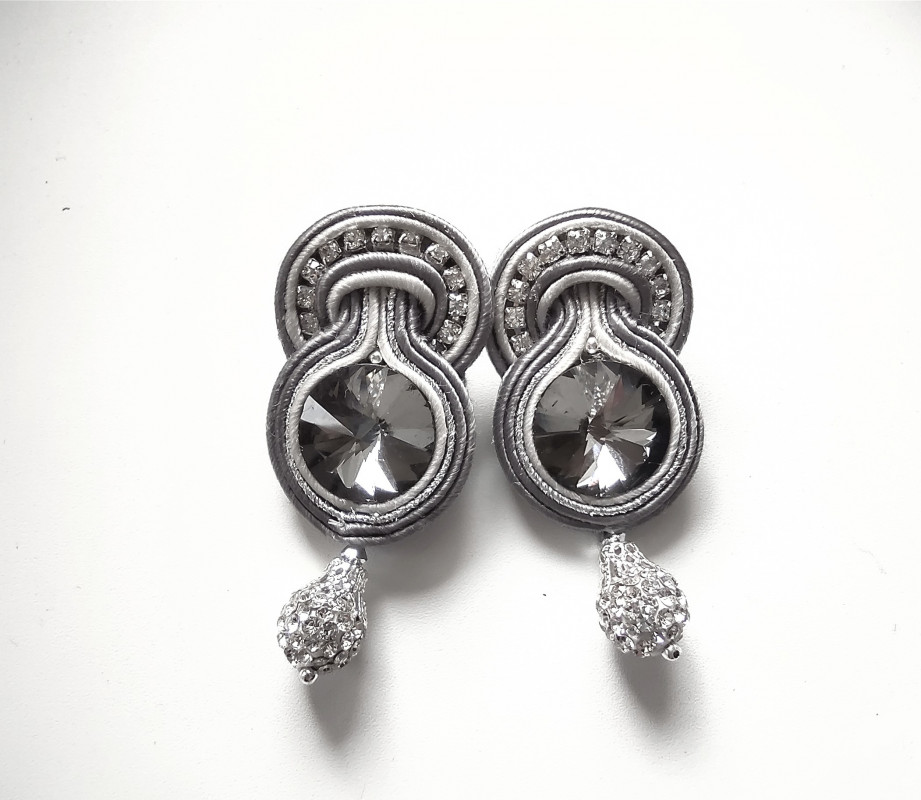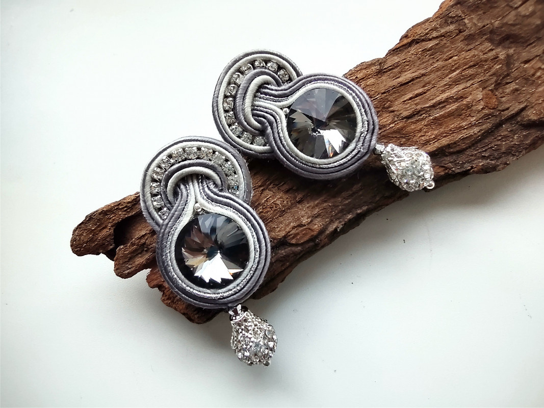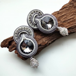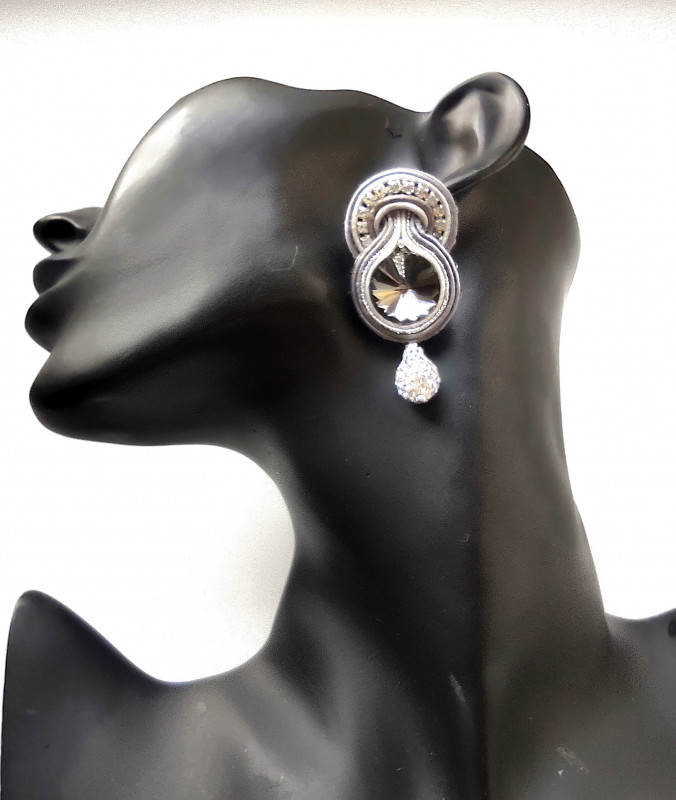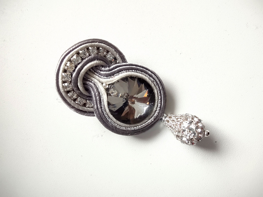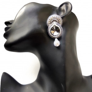 Materiał: sutasz, kryształ Swarovski rivoli, taśma i kula cyrkoniowa.