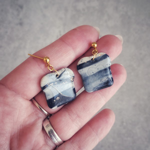 Kolory: odcienie niebieskości i granatu z nakrapianym beżem i drobinkami złota.
