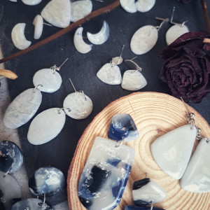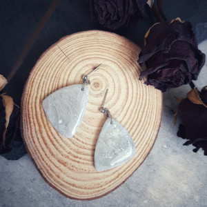Kolczyki posiadają nieco nieregularny kształt nawiązujący do struktury kamienia.