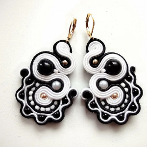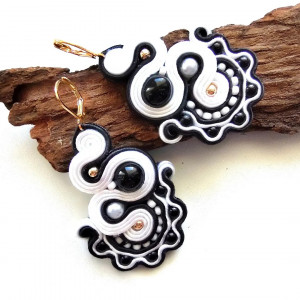 Materiał: sutasz, szklana perła, japońskie koraliki Toho, onyks, bigle antyalergiczne.