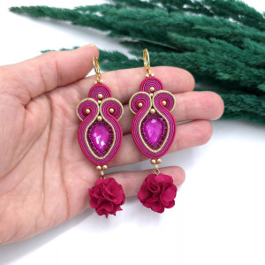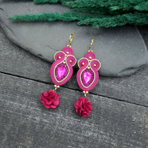 Kolczyki sutasz fuksjowe różowe „Rosalia” z kryształkiem i kwiatkiem