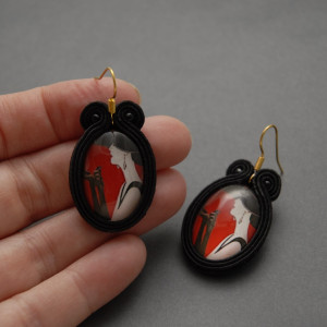 oferuję kolczyki zrobione techniką sutasz, ozdobione szklanym kaboszonem i drobnymi koralikami.