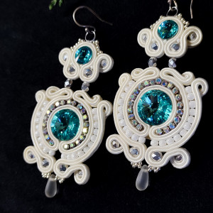 Kolczyki sutasz kość słoniowa z kryształami Swarovskiego