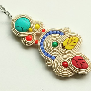 Materiał: sutasz, szkło, howlity, japońskie koraliki Toho.