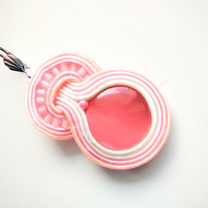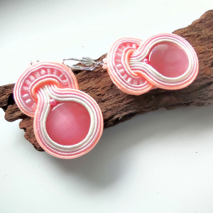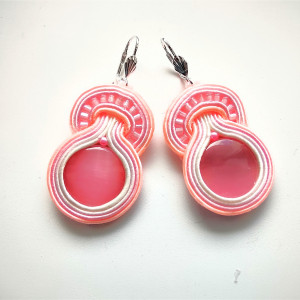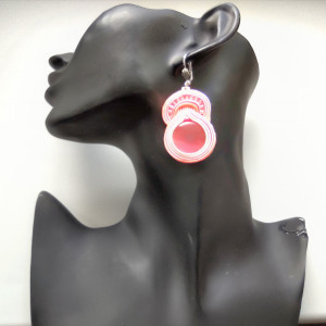 Kolczyki wykonane w technice haftu sutaszowego - szyje się kolorowe sznureczki milimetr po milimetrze, wszywając między nie kamienie i minerały, szkło itp.