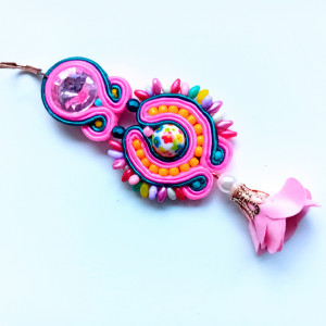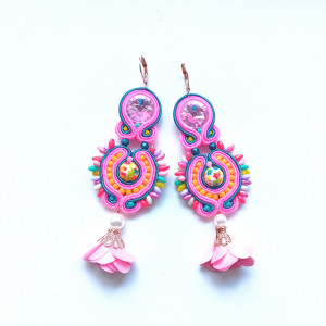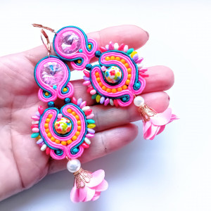 Długość kolczyków - 6 cm część sutaszowa+ 2.5 cm kwiatek satynowy.