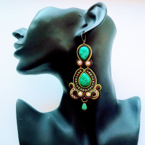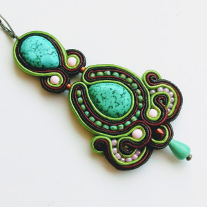 Materiał: sutasz, szkło, turkilusowe howlity, japońskie koraliki Toho.