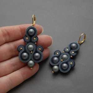oferuję kolczyki zrobione haftem sutasz, ozdobione muszlami malowanymi i koralikami.