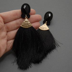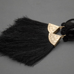 oferuję kolczyki zrobione techniką sutasz, ozdobione dużymi, fasetowanymi onyksami i drobnymi koralikami