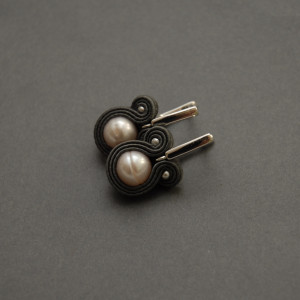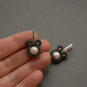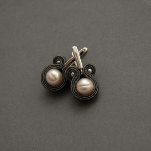 oferuję kolczyki zrobione haftem sutasz, ozdobione perłami słodkowodnymi