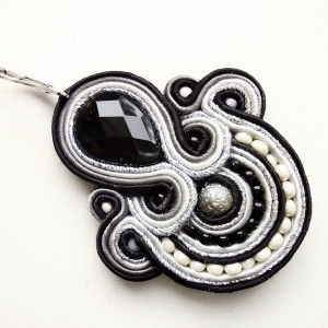Tu dodałam do sutaszu szlifowaną czarną łezkę, szarą macerowaną kulkę szklaną i japońskie koraliki Toho.