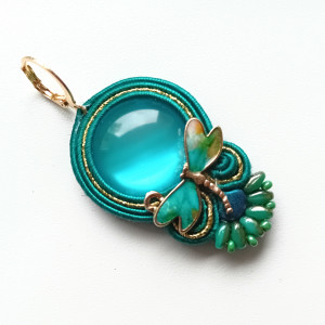 Tu dodałam do sutaszu kaboszon z kociego oka, emaliowane ważki koraliki Toho, Ginko, SuperDuo
