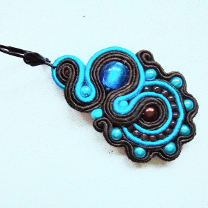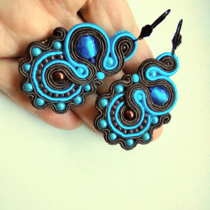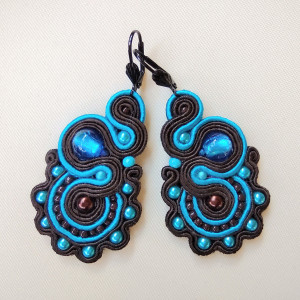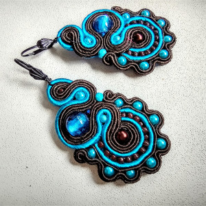 Kolczyki sutaszowe ręcznie haftowane w pracochłonnej technice haftu soutache.
