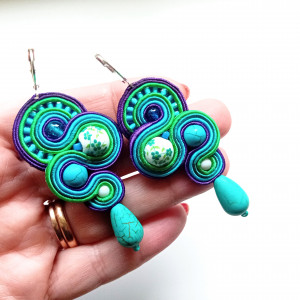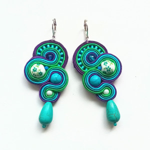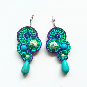 Materiał: sutasz kamienie - howlity, szkło crackle, japońskie koraliki Toho, bigle angielskie