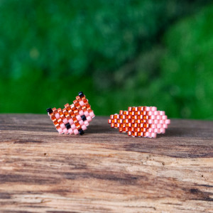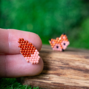 Lis oraz jego kita wykoralikowana ręcznie z intensywnie pomarańczowych metalicznych koralików oraz lekko różowawych.