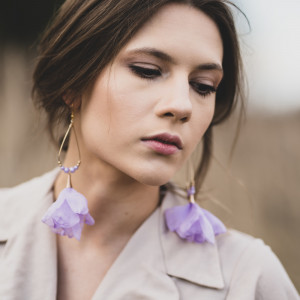 Na życzenie mogę skrócić i płatki kwiatów i elementy metalowe, z których wykonuję kolczyki. Inne kolory? również możliwe- proszę pytać, amm bardzo szeroką paletę materiałów - tiul, organza, woal, len.