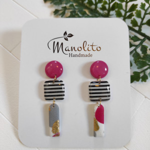 - Kolczyki wykonane od podstaw ręcznie z gliny polimerowej Fimo, która jest materiałem niezwykle trwałym i odpornym na czynniki zewnętrzne. Zapięcia wykonane ze stali chirurgicznej , dzięki czemu nie uczulają. Zatopione w żywicy epoksydowej. Kolory mogą się minimalnie różnić od tych na zdjęciu.